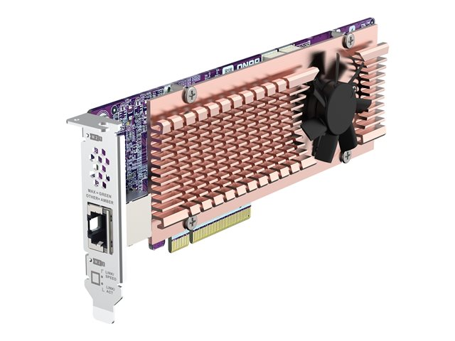 Produktbeskrivning QNAP QM2-2P410G1T - kontrollerkort - PCIe 4.0 x4 (NVMe) - PCIe 4.0 x8 Typ av enhet Kontrollerkort - instickskort - låg profil Busstyp PCIe 4.0 x8 Expansionsfack 2 M.2 2280 Formfaktorkomptibilitet för hårddisk M.2 Egenskaper 10GBASE-T-port Gränssnitt PCIe 4.0 x4 (NVMe) Enheter som stöds Halvledarenhet Max antal enheter 2 Dimensioner (BxDxH) 1.93 cm x 18.7 cm x 6.88 cm Designat för QNAP TDS-H2489, h2489FU-4309Y-64, h2489FU-4314, h2489FU-4314-128, h2489FU-4314-256, H2489FU-4314-512, TS-2888, h1290, H2490, H2490FU-7232P-64, H2490FU-7302P-128, H2490FU-7302P-256, H3088, h686, H686-D1602, h886, H886-D1622-16, TVS-472, 672, 872, h1288, H1688 - Nedladdningsbara filer