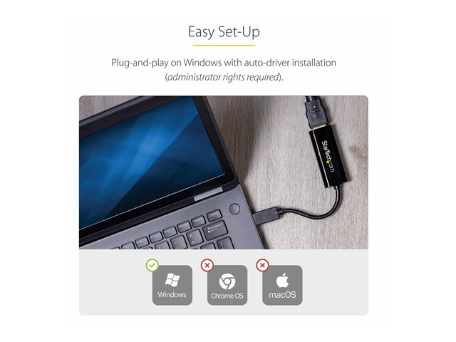 1080p (1920x1200) - Tunn/kompakt USB Type-A till HDMI-skärmadapterkonverterare - Externt video- och grafikkort - Svart - Endast Windows - adapterkabel - HDMI / USB - TAA-kompatibel - 19 cm