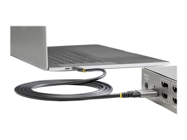Produktbeskrivning StarTech.com 1 m sidoskruvlåsande USB C-kabel 10 Gbps - USB-IF-certifierad USB-C-kabel - USB 3.1/3.2 Gen 2 Type-C kabel - 100 W (5 A) Power Delivery-laddning, DP alt-läge - Dubbel skruvlåsning - USB-C-kabel ladda/synkronisera - USB typ C-kabel - 24 pin USB-C till 24 pin USB-C - 1 m Typ USB typ C-kabel Egenskaper Stöd för 4K, EMI-skydd, stödjer DisplayPort alternativläges, strömförsörjningsteknologi, ytterdiameter 4,8 mm, 10 Gb datahastighet Kabellängd 1 m Kontaktdon 24 pin USB-C - hane - rakt/lockande Kontakt (andra änden) 24 pin USB-C - hane - rak Standarder som följs USB 3.2 Gen 2 / DisplayPort 1.4 /Thunderbolt 3 Färg Grå, svart Tillverkarens garanti 2 års garanti - Tillbehör