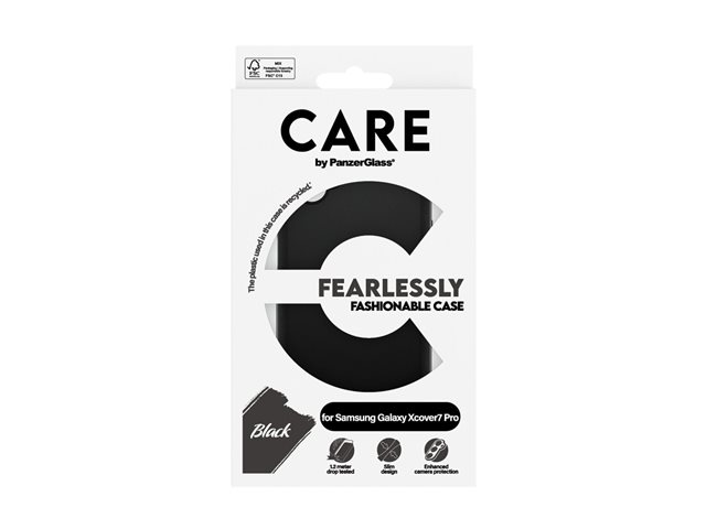Produktbeskrivning CARE by PanzerGlass - baksidesskydd för mobiltelefon Typ av produkt Baksidesskydd för mobiltelefon Dimensioner (BxDxH) 8.283 cm x 1.249 cm x 17.226 cm Vikt 30 g Material Termoplastisk polyuretan (TPU) Färg Svart Återvunnet produktinnehåll 100 % - tillverkad av återvunnen plast Designat för Samsung Galaxy XCover7 Pro - Nedladdningsbara filer