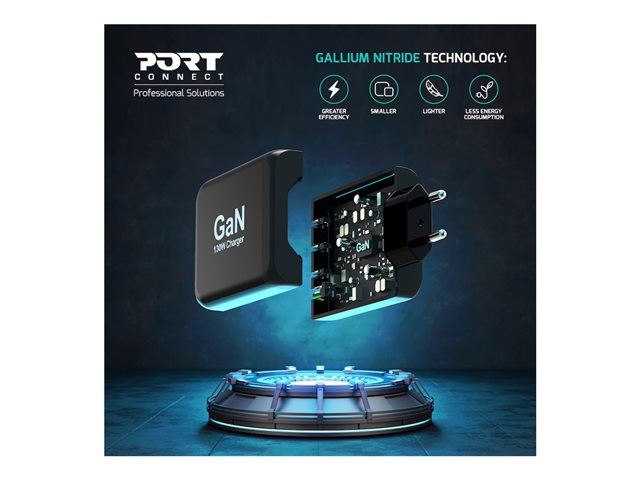 Produktbeskrivning PORT Connect strömadapter - GaN - USB typ A, 3 x USB-C - 130 Watt Typ av produkt Strömadapter Utformad för Surfplatta, mobiltelefon, anteckningsbok Dimensioner (BxDxH) 12.3 cm x 2.95 cm x 6.1 cm Vikt 229 g Lokalisering Europa Typ av utkontakt Total 4: USB typ A, 3 x USB-C - på kabel: USB-C Nätspänning AC 100-240 V (50/60 Hz) Max elektrisk ström 5 A Snabbladdningsteknik Power Delivery, Qualcomm Quick Charge 3.0 Effekt 130 Watt Strömenhetens driftlägen USB-C1 + USB-C2 - 65 W + 65 W