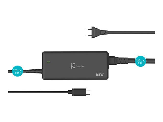 Produktbeskrivning j5create strömadapter - 24 pin USB-C - 65 Watt Typ av produkt Strömadapter Utformad för Mobiltelefon, surfplatta, anteckningsbok Vikt 222.5 g Färg Svart Typ av utkontakt 24 pin USB-C Nätspänning AC 100-240 V (50/60 Hz) Tillförd spänning 5 / 9 / 12 / 15 / 20 V Max elektrisk ström 3.25 A Snabbladdningsteknik Power Delivery Effekt 65 Watt Tillverkarens garanti 2 års garanti - Nedladdningsbara filer