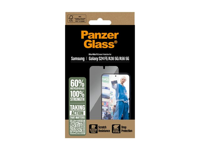 Produktbeskrivning PanzerGlass - skärmskydd för mobiltelefon - ultrabred passning Typ av produkt Skärmskydd - glas Avsedd för Mobiltelefon Skydd Reptålig, smutsresistent, vattenavstötande, droppskydd, stötsäkert, klåfingerskydd, motstår fingeravtryck, oljeavvisande, fettskydd, fläcktålig Beläggning Oleofob Förpacknings innehåll Skärmskydd, EasyAligner Produktmaterial PET (Polyethylene Terephthalate), allerglas (mikrofraktur2023) Dimensioner (BxDxH) 7.406 cm Längd 15.876 cm Grovlek 0.51 mm Vikt 13 g Designat för Samsung Galaxy S24 FE - Nedladdningsbara filer