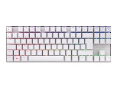 Produktbeskrivning CHERRY XTRFY MX 8.2 - tangentbord - 80% TKL - QWERTZ - tysk - svart Inmatningsenhet Typ av enhet Tangentbord Bakgrundsbelyst RGB/16 miljoner färger Gränssnitt Bluetooth 5.2, 2.4 GHz, USB-C Trådlös mottagare Nano trådlös USB-mottagare Anslutningsteknik Kabelansluten, trådlös Lokalisering och layout QWERTZ tysk Snabbtangentsfunktion Webbläsare, CHERRY-tangent, FN-knapplås, Game Mode-tangent, stänga av ljud, volym -, volym +, lås WIN-tangent Skydd Reptåligt Gaming Ja Nyckellåstyp CHERRY MX2A Red Färg Svart Dimensioner (BxDxH) 34.8 cm x 12.3 cm x 3.6 cm Vikt 830 g Tillverkarens garanti 2 års garanti - Nedladdningsbara filer