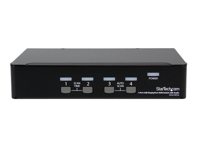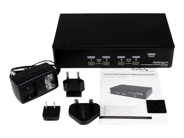 Produktbeskrivning StarTech.com USB DisplayPort KVM-switch med 4 portar och audio - omkopplare för tangentbord/video/mus/ljud/USB - 4 portar