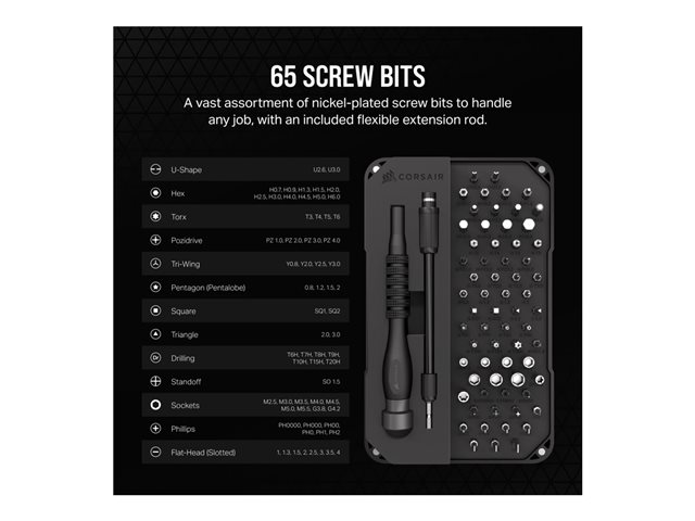 Produktbeskrivning CORSAIR PC DIY Precision Toolkit - skruvmejsel med bituppsättning - 67 delar