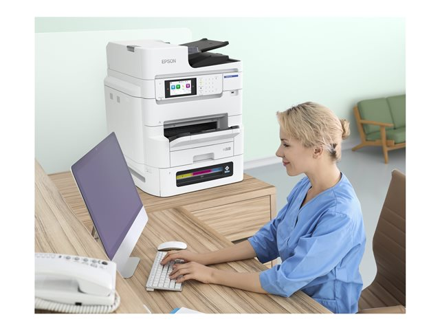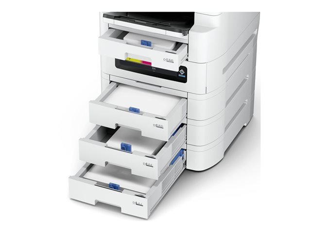 Produktbeskrivning Epson WorkForce Pro EM-C8101RDWF - multifunktionsskrivare - färg Typ av enhet Multifunktionsskrivare Faxtyp Super G3 - vanligt papper Utskriftsteknik Bläckstråle (färg) Bläckstråleteknik Epson PrecisionCore utan värme - 4-färgs Driftscykel per månad (max) 75000 sidor Rekommenderad månatlig volym 2 000 - 10 000 sidor Max kopieringshastighet Upp till 22 sidor/minut (mono)/upp till 21 sidor/minut (färg) Max kopieringsupplösning Upp till 600 x 1200 dpi (mono)/upp till 600 x 1200 dpi (färg) Maximal kopieringsupplösningsklass Upp till 600 x 1200 dpi (mono)/upp till 600 x 1200 dpi (färg) Max utskriftshastighet Upp till 26 sidor/minut (mono)/upp till 25 sidor/minut (färg) Max utskriftsupplösning Upp till 4800 x 1200 dpi (mono)/upp till 4800 x 1200 dpi (färg) Maximal utskriftsupplösningsklass Upp till 4800 x 1200 dpi (mono)/upp till 4800 x 1200 dpi (färg) Max faxöverföringshastighet 33.6 Kbps Skanning 1200 x 2400 dpi Originaltyp Ark Dokumentmatarens kapacitet 50 ark Mediastorlek 330 x 1200 mm (max) Mediatyp Kuvert, vanligt papper, returpapper, färgat papper, brevpapper, glansigt fotopapper Standard mediekapacitet 400 ark Max mediekapacitet 1900 ark Kapacitet hos förbikopplande dokumentmatare 150 ark Utmatningsfackens kapacitet 250 ark Automatisk duplex Ja (kopiering) Ja (utskrift) Ja (skannar) Anslutningsmöjlighet Ja Gränssnitt USB 2.0, USB 2.0-värd, Gigabit LAN, Wi-Fi(ac) AirPrint-aktiverad Ja Kontorsmaskinfunktioner Replaceable Ink Pack System (RIPS), skanna till e-post, skanna till FTP, skanna till nätverksmappen, skanna till USB-enhet, fax till e-post, fax till mapp, skriv ut från USB Flash-enhet Strömtillförsel Växelström 120/230 V (50/60Hz) Dimensioner (BxDxH) 62.1 cm x 75.1 cm x 71.1 cm Vikt 76.8 kg - Tillbehör