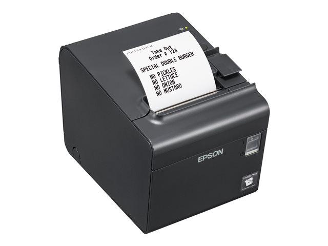Produktbeskrivning Epson TM-L90II - kvittoskrivare - svartvit - termisk linje Typ av skrivare Kvittoskrivare - termisk linje - svartvit Vikt 1.9 kg Lokalisering Engelska / Europa Max. mediestorlek Rulle (8 cm) Maximal mediestorlek (anpassad) 80 mm Utskriftshastighet Upp till 170 mm/sek - max hastighet Maxupplösning (svart/vit) 203 x 203 dpi Skärblad Ja Gränssnitt USB, LAN Streckkoder Kod 39, Kod 93, Code 128, UPC-A, UPC-E, EAN/JAN-8, EAN/JAN-13, ITF, Codabar, QR-kod, MaxiCode, PDF417 Mediatyp Termiskt papper Strömtillförsel DC 24 V Färg Epson Dark Gray Tillverkarens garanti 3 års garanti Dimensioner (BxDxH) 14 cm x 20.3 cm x 14.8 cm - Tillbehör