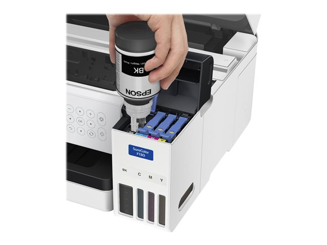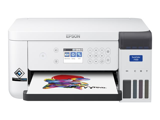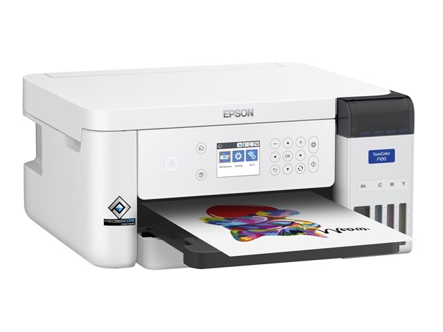 Produktbeskrivning Epson SureColor SC-F100 - skrivare - färg - färgsublimering Typ av skrivare Arbetsgruppsskrivare - färgsublimering - färg Vikt 4.6 kg Bläckstråleteknik Epson PrecisionCore MicroTFP Bläckpalett (färger) Cyan, magenta, gul, svart Mediestorleksklass A4 Maxupplösning (svart/vit) 600 x 1200 dpi Maxupplösning (färg) 600 x 1200 dpi Maximal upplösningsklass (svart-vitt) 600 x 1200 dpi Maximal upplösningsklass (färg) 600 x 1200 dpi Gränssnitt Wi-Fi, USB 2.0, LAN Mediatyp Vanligt papper Total mediekapacitet 150 ark Nätverk Printserver Tillverkarens garanti 1 års garanti Dimensioner (BxDxH) 35.7 cm x 34.7 cm x 18.7 cm - Tillbehör