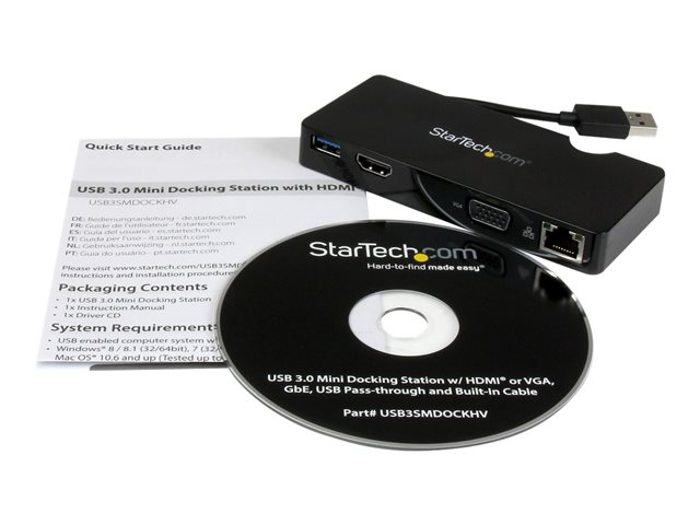 USB 3.0 Mini Docking Station w/ USB, GbE Ports - Portable Universal Laptop Travel Hub (USB3SMDOCKHV) - dockningsstation - USB - HDMI - 1GbE