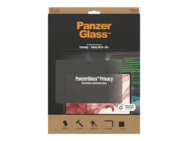 Produktbeskrivning PanzerGlass Privacy & Case Friendly - skärmskydd för surfplatta Typ av produkt Skärmskydd - glas - med sekretessfilter Avsedd för Surfplatta Skydd Reptålig, antibakteriell, stötsäkert Produktmaterial Härdat glas Färg CrystalClear Designat för Samsung Galaxy Tab S7+ - Nedladdningsbara filer