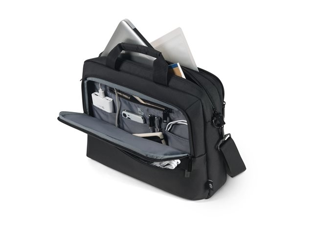 Produktbeskrivning DICOTA Eco Top Traveller CORE - notebook-väska Produkttyp Notebook-väska Färg Svart Produktmaterial 300D RPET-polyester Dimensioner (BxDxH) 27 cm 37 cm Vikt 640 g Notebook-kompatibilitet 14.1" Datorstorlekar som stöds 13" - 14.1" / 33 cm - 35.8 cm Egenskaper Vadderat fack för bärbar dator, vattenavvisande Bärrem Vadderad axelrem, bärhandtag upptill Tillverkarens garanti Begränsad livstidsgaranti - Nedladdningsbara filer